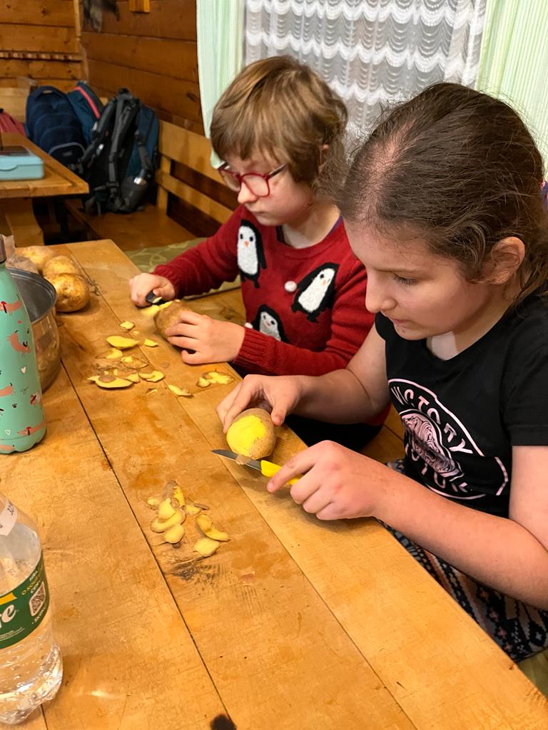 . Během výletu nám počasí příliš nepřálo, ale o to více jsme se těšili do tepla chalupy na výbornou večeři, kterou jsme si uvařili. Tentokrát měly premiéru francouzské brambory
