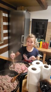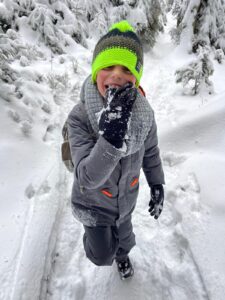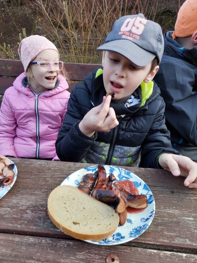 Během listopadového víkendu jsme zamířili do Černous na mysliveckou chalupu. Počasí se nám trochu změnilo a během víkendu hodně sněžilo, to nás ale nepřekvapilo a na vše jsme byli připraveni. V chalupě jsme si krásně topili, takže jsme na chumelenici koukali z tepla. Během večerů jsme hráli deskové hry, koukali na pohádky, užívali si pohody. Při sobotním výletě jsme zavítali nejen do nedalekého Polska, ale také na zámecký dvůr v Černousech, kde jsme si dali teplý čaj. O víkendu jsme si společně vařili samá parádní jídla – kuře na paprice, pekli jsme sekanou… Rodiče nám moc nevěřili, ale o to víc byli překvapeni, jak moc všem chutnalo