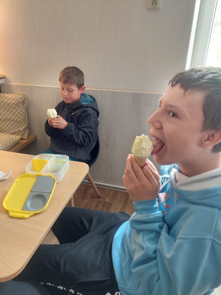 Hned před chalupou jsme měli velké dětské hřiště, k dispozici ohniště, vlastní velkou zahradu – no prostě nádhera. Při sobotním výletu jsme objevili Rumcajsovu jeskyni, navštívili jsme město Jičín, pili ze studánky a došli jsme až k Prachovským skalám. Není divu, že rizoto k večeři, které jsme si uvařili, zmizelo celé.